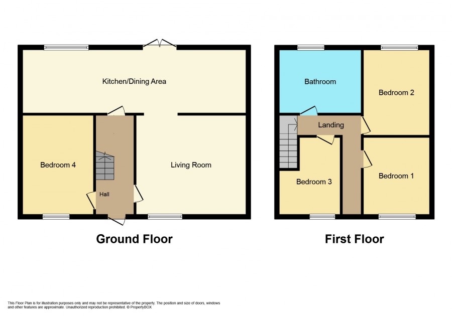 The hall has stairs off to the first floor and doors lead into the living room and 4th bedroom and kitchen.