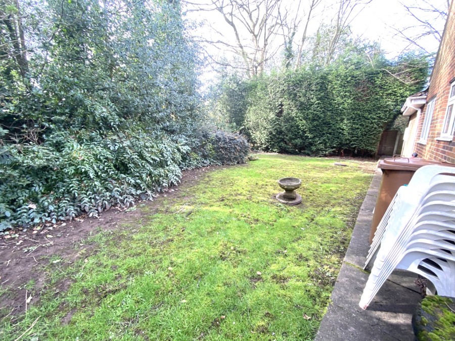 Fabulous large private mature garden, patio area, lawn, shrubs, trees and pond.